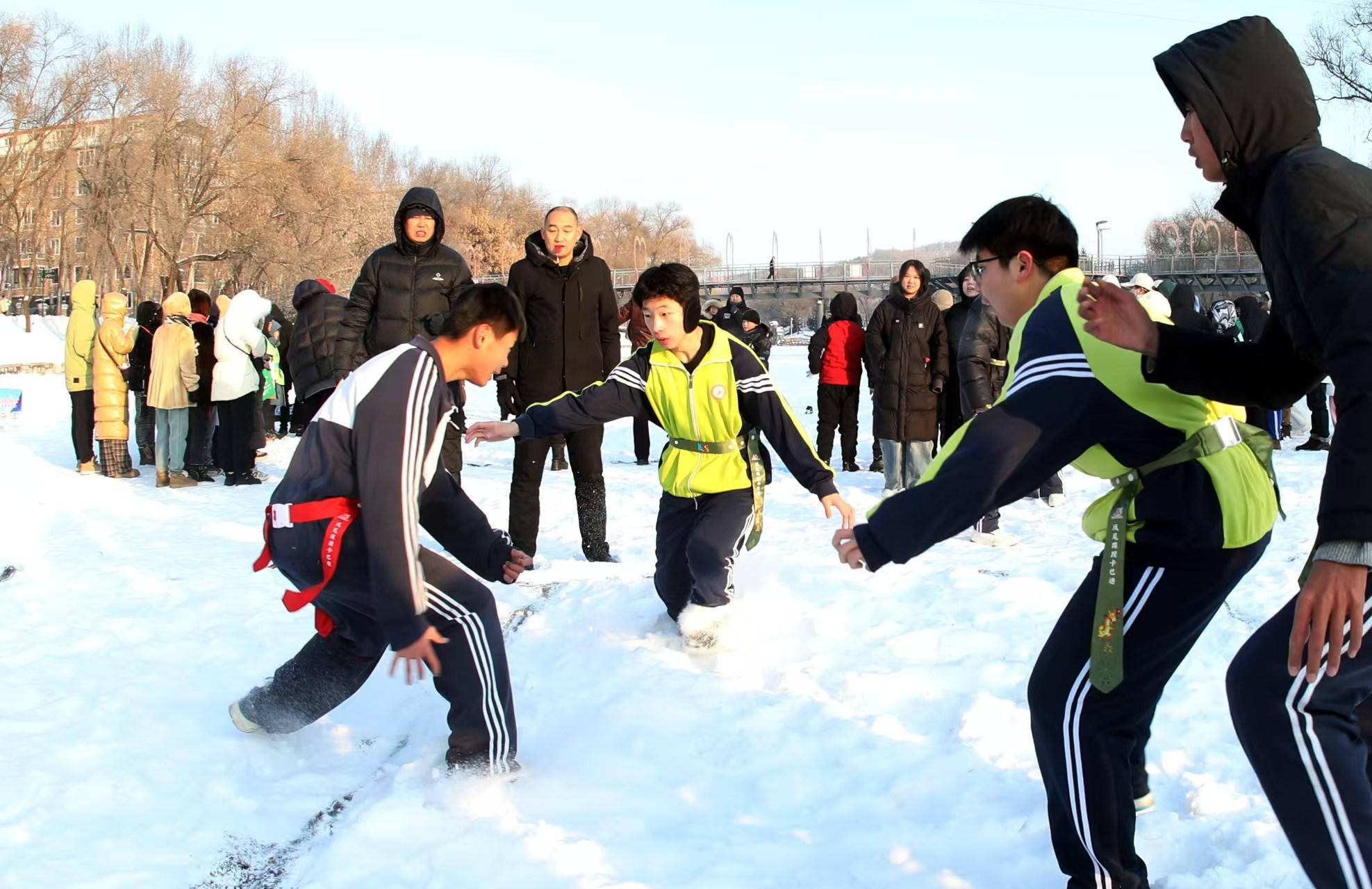 趣味項(xiàng)目包括雪地拔河、雪地毛毛蟲和雪地卡巴迪等。拔河賽場(chǎng)哨聲響起,隊(duì)員們齊心協(xié)力;卡巴迪比賽中,選手們機(jī)敏閃躲、果斷出擊,場(chǎng)面熱烈歡騰;“雪地毛毛蟲”項(xiàng)目則需三人一組協(xié)同奔跑,在冬日雪地上留下串串歡笑?!拔姨貏e喜歡冰雪運(yùn)動(dòng),通過團(tuán)體的努力,我知道了集體的力量從來不是一個(gè)人的孤軍奮戰(zhàn)。今后我們會(huì)一起努力,共同為集體爭(zhēng)光。”鶴崗市實(shí)驗(yàn)小學(xué)學(xué)生欒舒堯說。