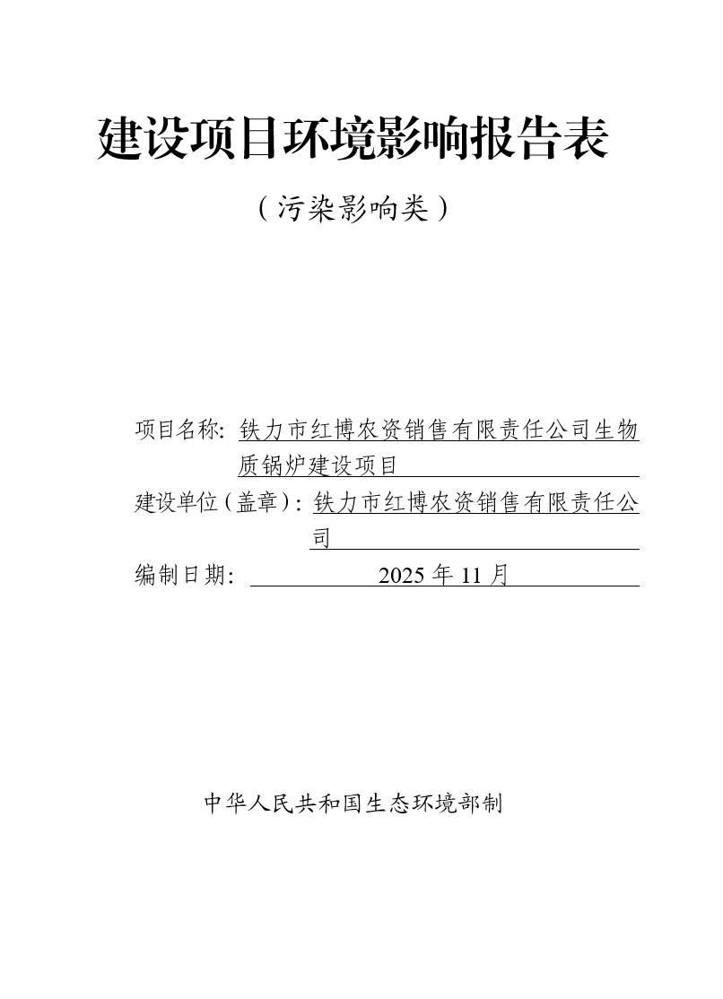 鐵力市紅博農(nóng)資銷售有限責任公司生物質(zhì)鍋爐建設項目環(huán)境影響報告表
