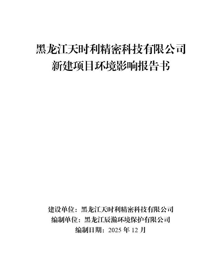 黑龍江天時利精密科技有限公司新建項目環(huán)境影響報告書及公眾參與說明